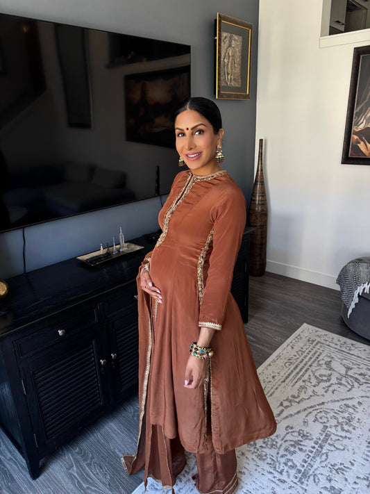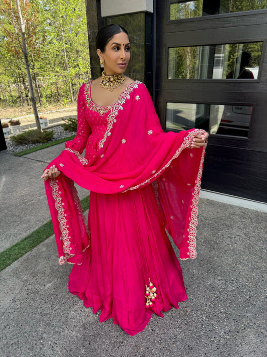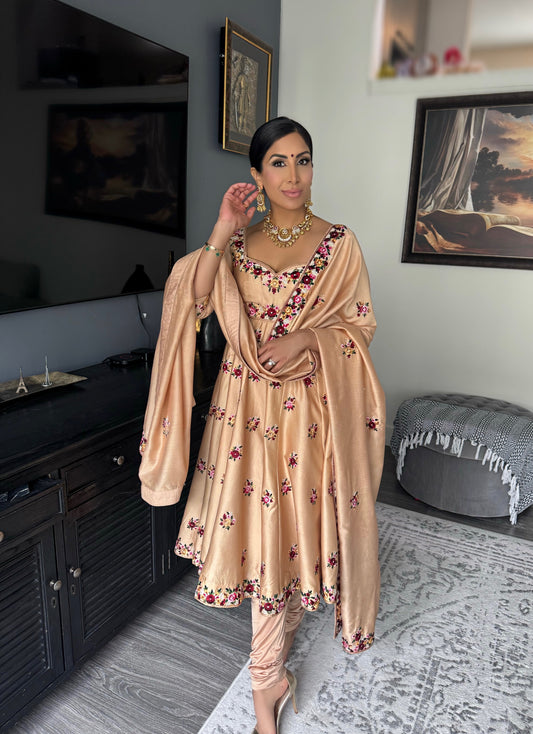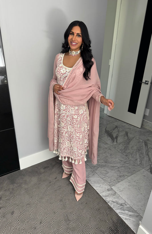 Pearl Rose | Dusty Pink A-Line Anarkali with Pants