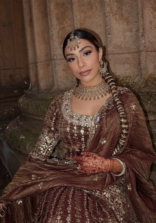 Anamika | Brown Embroidered Lengha