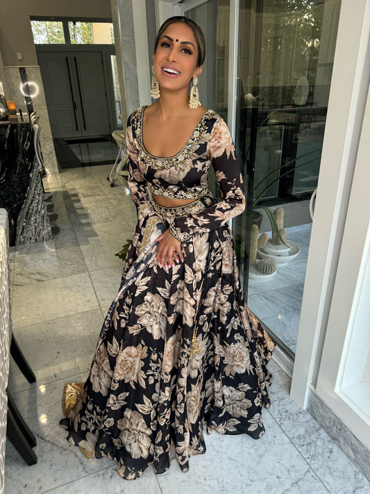 Heere | Lightweight Black Floral Lengha