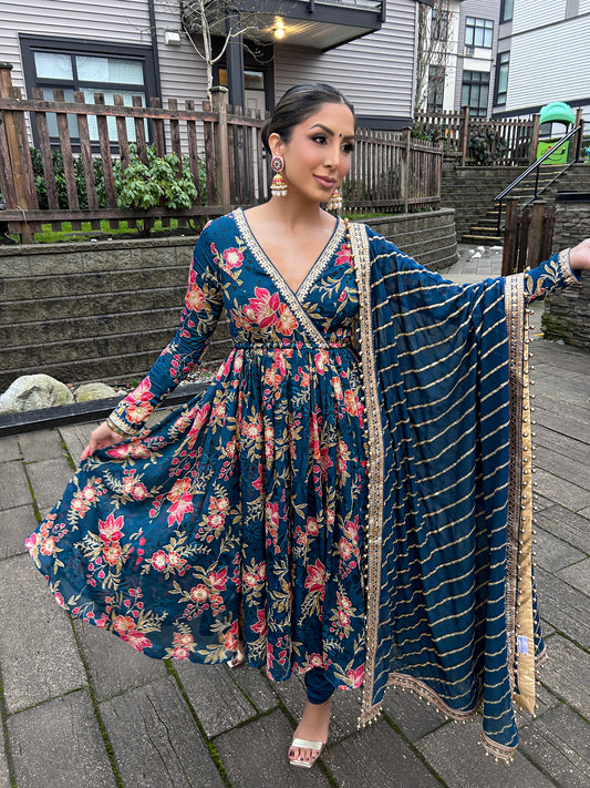 Huda | Blue Printed Anarkali