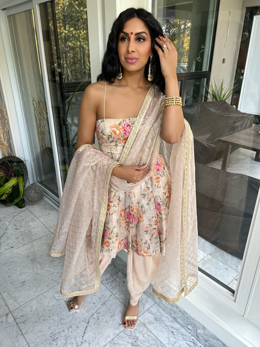Nova | Floral Babydoll Anarkali Top with Dhoti Salwar