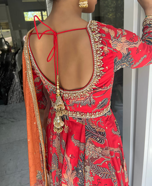 Autumn | Red Floral Anarkali Set