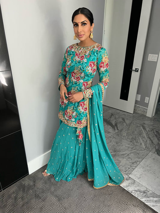 Scarlet | Blue Printed Sharara Set