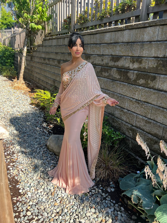 Star | Light Pink Mermaid Style Pre-Pleated Saree