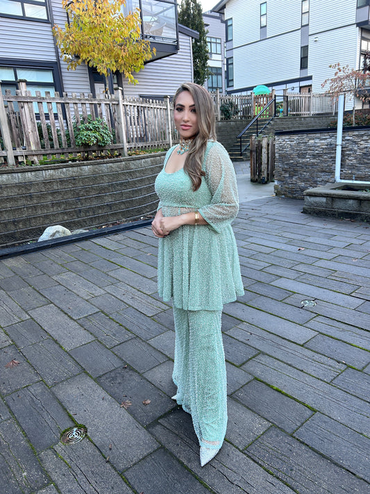 Light | Blue Peplum Blouse and Pallazo Pants Set